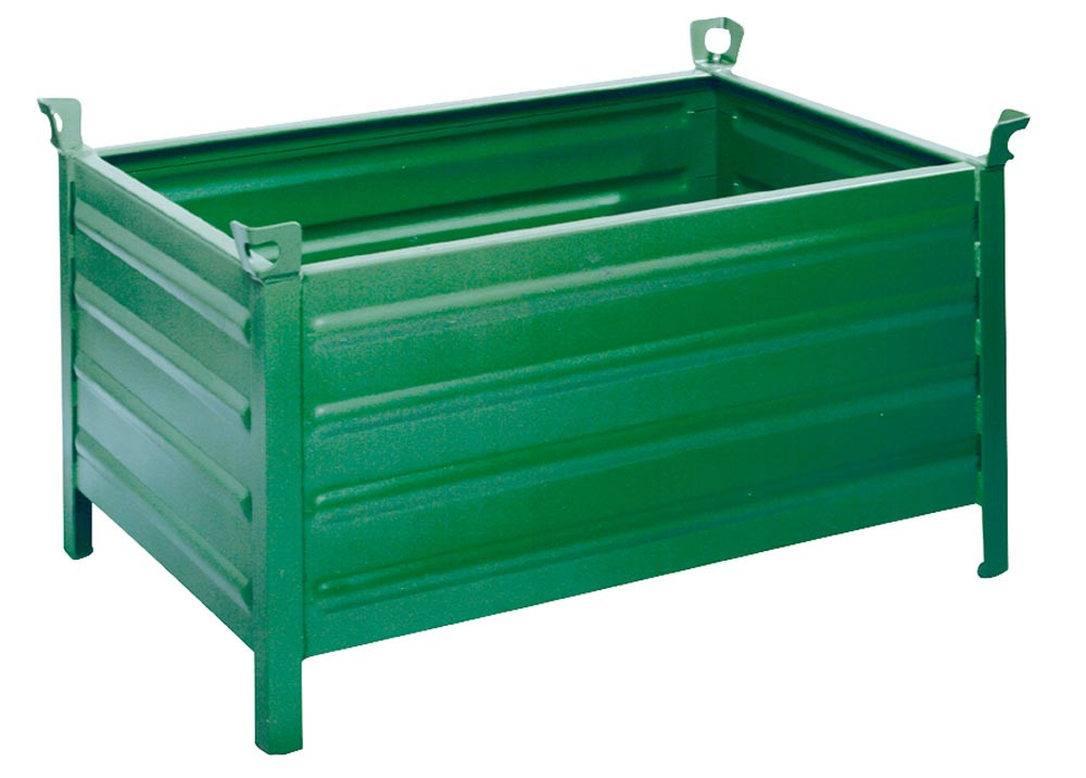 Stapelbehälter, Stahl, Traglast 700 kg, geschlossen, Fangecken, LxB 870x570 mm, Füll-/Stapelhöhe 400/680 mm, RAL 6011 resedagrün