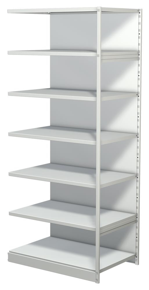∙ Optimale Raumausnutzung ∙ Fachböden 30 mm stark, im Raster von 59 mm höhenverstellbar ∙ Regalpfosten aus Kastenprofilen mit glatten Fronten ∙ Serienmäßig mit bodenbündiger Sockelblende ∙ Mit zusätzlichen Fachböden, Fachteilern, Seiten- und Trennstegen und Pendelhefterschienen individuell auszustatten ∙ Türen-Anbausätze, Seitenblenden und Zwischenwände ermöglichen die problemlose Integration von Schrankelementen ∙ Hochwertige Pulverbeschichtung in RAL 7035 lichtgrau