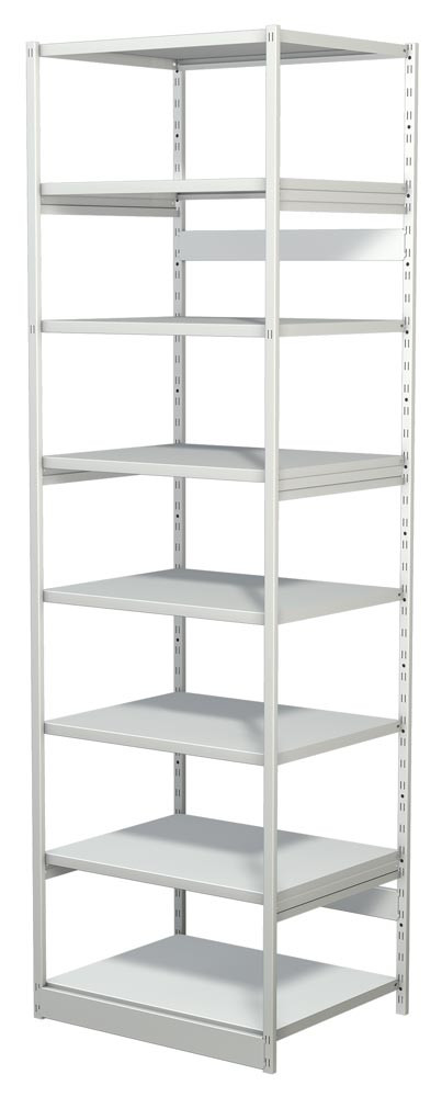 Steckregal ohne Rückwand, Grundfeld, 8 Fachböden, 7 OH, BxTxH 750x300x2600 mm, lichtgrau E854416