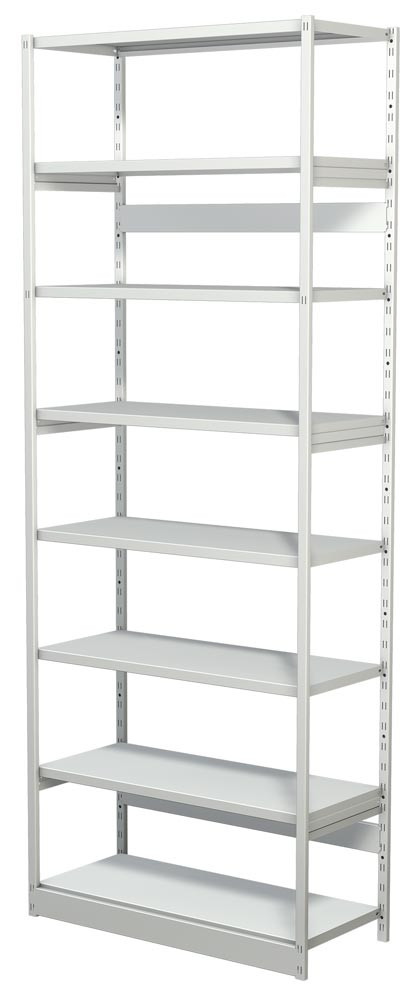 Steckregal ohne Rückwand, Grundfeld, 8 Fachböden, 7 OH, BxTxH 750x300x2600 mm, lichtgrau E854416