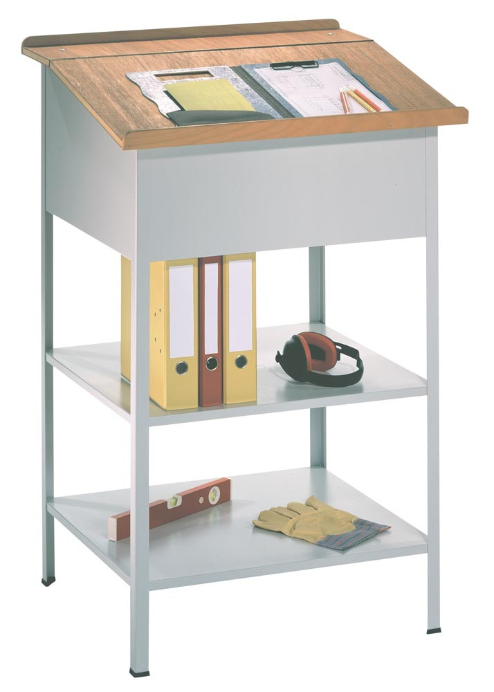Stehpult, offene Ausführung, 2 feste Böden, 1 fester Pultaufsatz, BxTxH 700x600x1100/1200 mm, RAL 3000 E870300