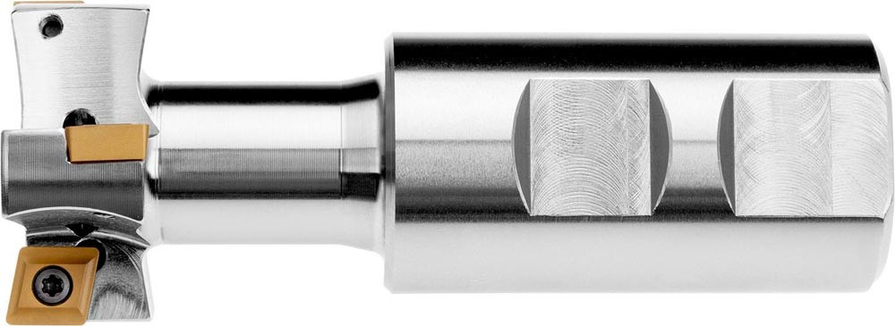 T-Nutenfräser zum spannen von 2 Stück CCMX 060304 einseitigen Wendeschneidplatten · Schnittdurchmesser 25mm mit 90° Anstellwinkel und 25mm Weldon Schaft gemäß DIN 1835B · 86mm Gesamtlänge · Kühlkanalbohrung zum T-Nutenfräsen und rückseitiges Fräsen mit einer maximalen Schnitttiefe von 11mm