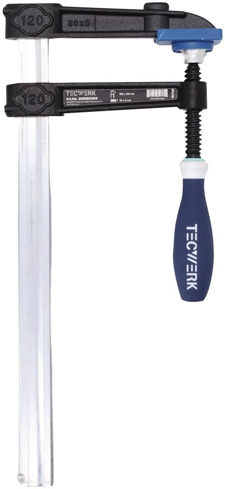 Temperguss-Schraubzwinge Spannweite 1250 mm Ausladung 120 mm 3-Komponentengriff 35 x 11 mm