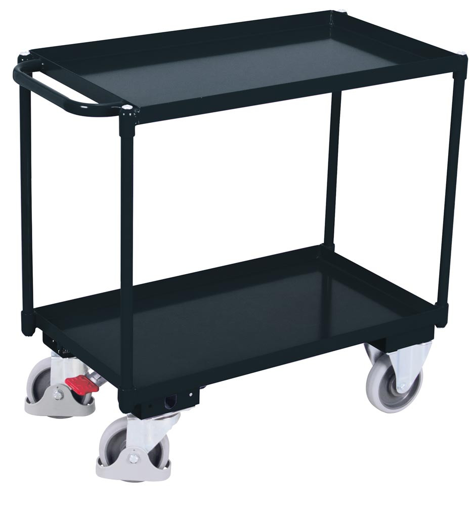 Tischwagen, 2 öldicht verschweißte Wannen, Ladefläche LxB 845x495 mm, Außenmaße LxBxH 985x500x910 mm, Traglast 400 kg, RAL 7016 anthrazitgrau