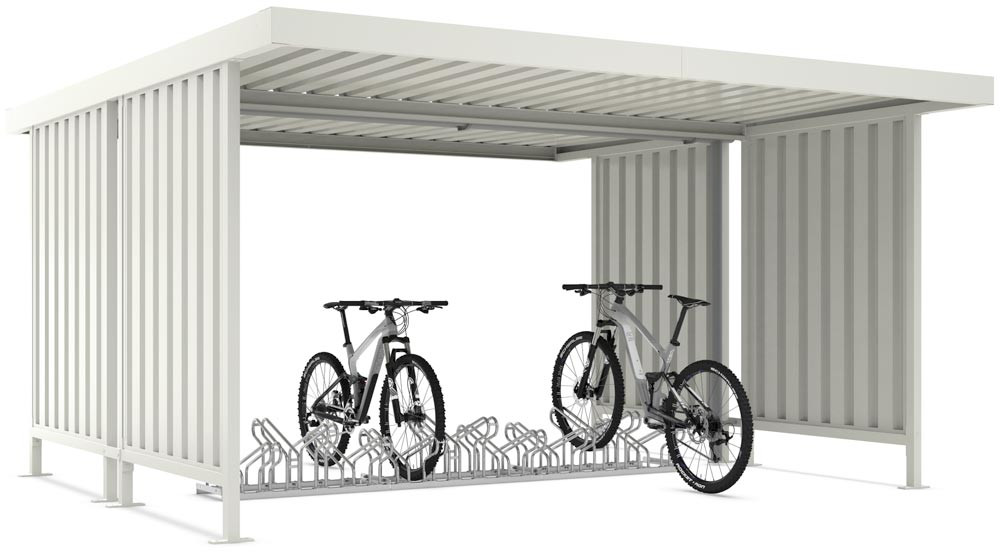 Überdachung, Modell Leipzig, doppelseitig, Grundeinheit, Profilblech RAL 9002, BxTxH 4300x4400x2350 mm
