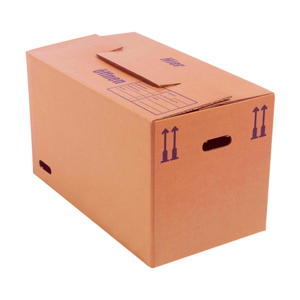 ∙ Durch den sicheren 3-fach Boden mit Steckverschluss besonders robust und stabil ∙ Optimal für den Umzug geeignet ∙ Mit Griffen zum "Einklappen", damit beim Tragen die Grifflöcher nicht sofort einreissen ∙ Deckelklappen ineinander steckbar, Beschriftungsfelder aufgedruckt ∙ FEFCO 1000