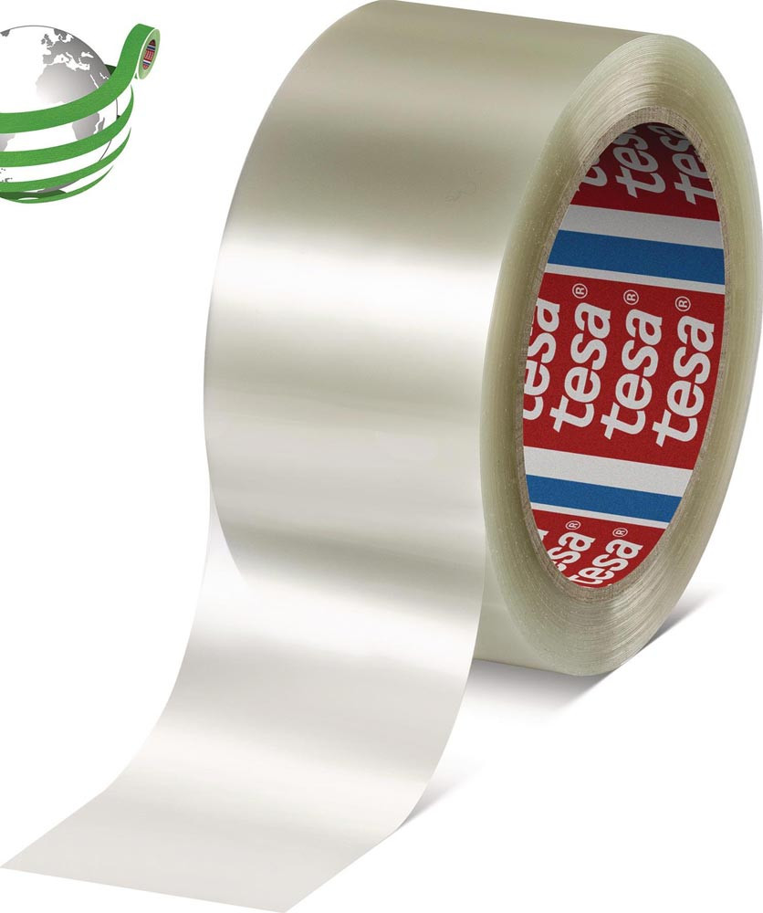 für mittelschwere Kartons bis zu 30 kg · dünnes Trägermaterial aus 90% recyceltem PET · dünn und anpassungsfähig · reißfest · geräuschloses Abrollen · gute Soforthaftung · für manuelle als auch für automatische Kartonverschlüsse · Klebmasse: Acrylat · Reißkraft: 45 N/cm · Reißdehnung: 100% · Anwendung: Kartonverschluss für leichte und mittelschwere Kartons bis zu 30 kg · manuelle und automatisierte Anwendung mit langen Maschinenrollen