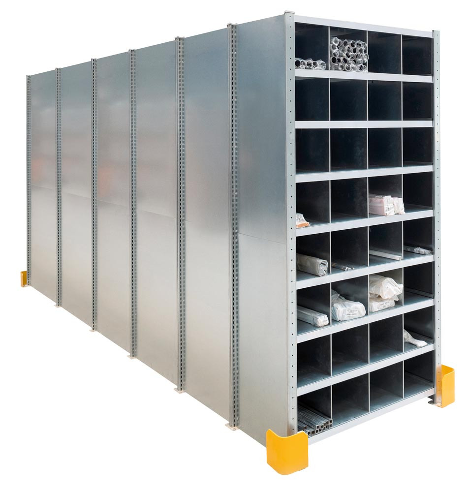 Vollblech-Seitenblenden-Set für eine Wabenregal-Außenwand TxH 3000x2000 mm, bestehend aus 12 Einzel-Blenden, RAL 7035 lichtgrau