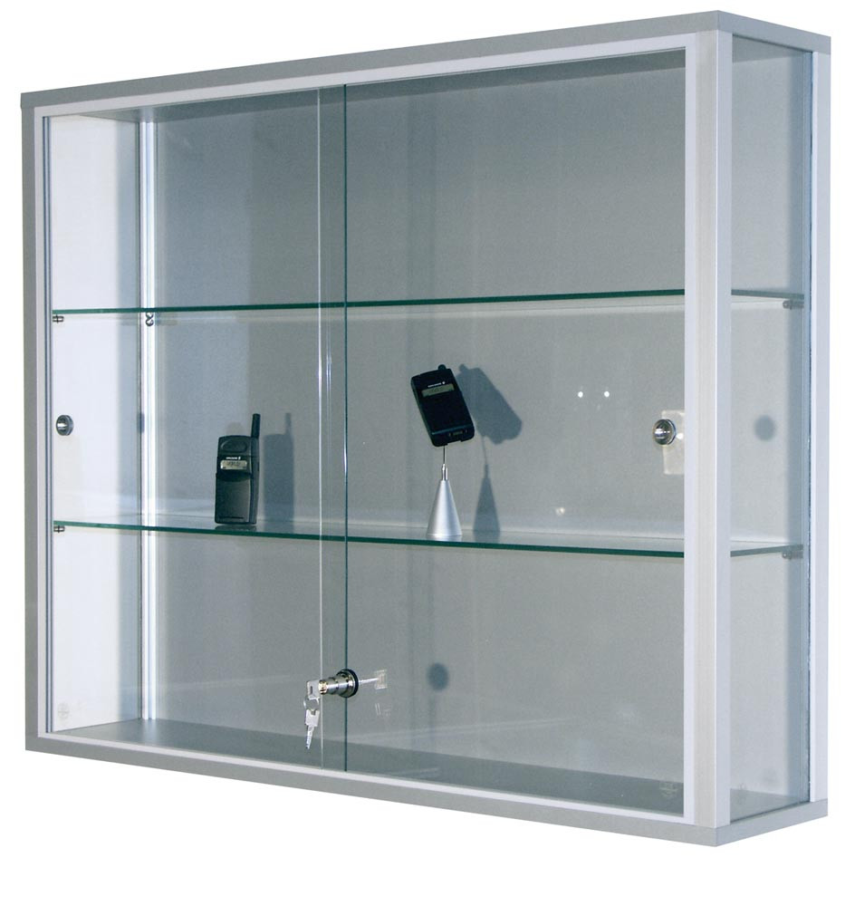 Wandvitrine, BxTxH 1000x200x800 mm, Aluprofile, 2 Glasböden, Schiebetüren