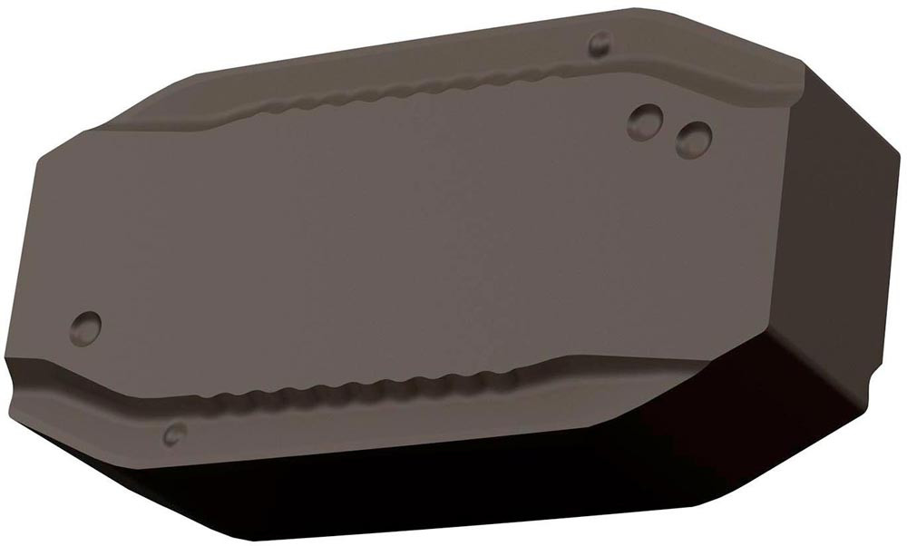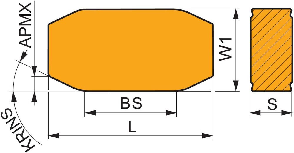 Doppelseitige negative barpeeling Wendeschneidplatte · Rechteckig mit einer Länge von 40mm · 9.6mm Dick für 3.5mm Schnitttiefe · Indexgenauigkeit nach ISO-Toleranzklasse-G · Spanbrecher PM mit S01 Schneidkantenpreparation · im Substrat T9315 · MT-CVD beschichtet functionally graded WC-Co carbide im ISO-Bereich P05 -P25 · zum hohe Festigkeit Stählen