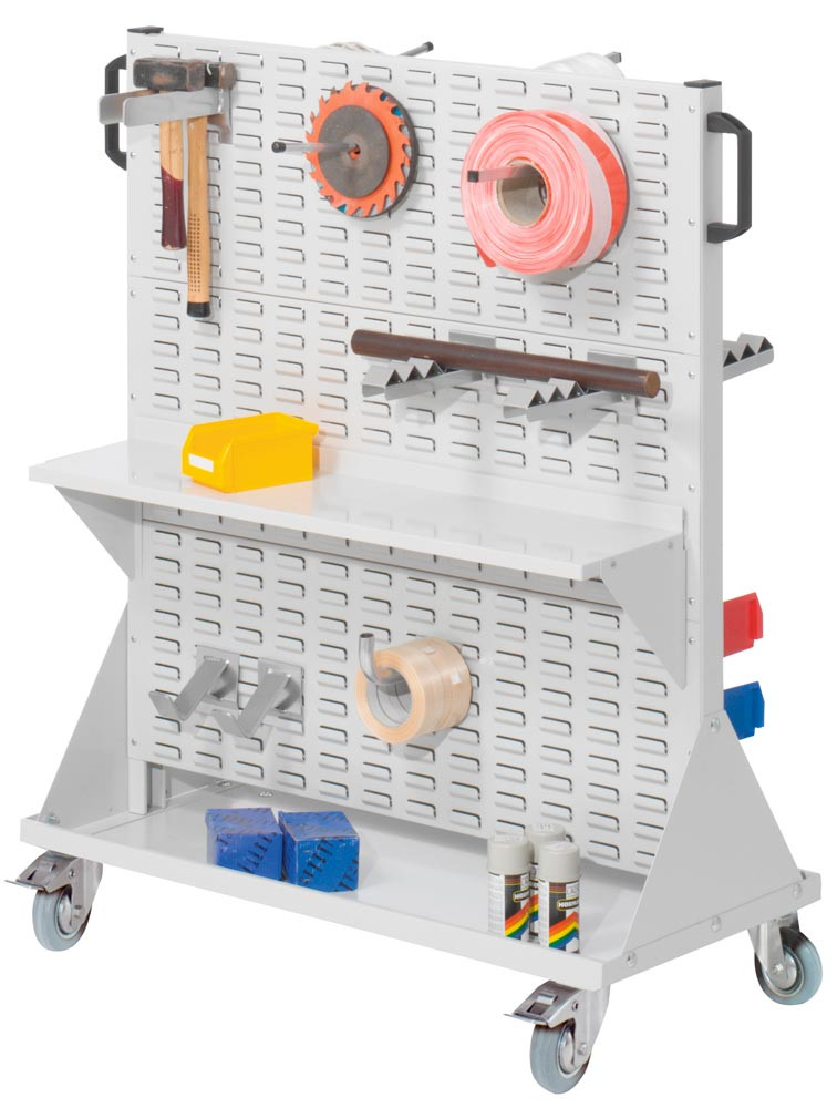 Werkstattwagen, mit 3 Schlitzplatten je Seite, mit Zubehör, BxTxH 1000x500x1230 mm, RAL 7035 E848697