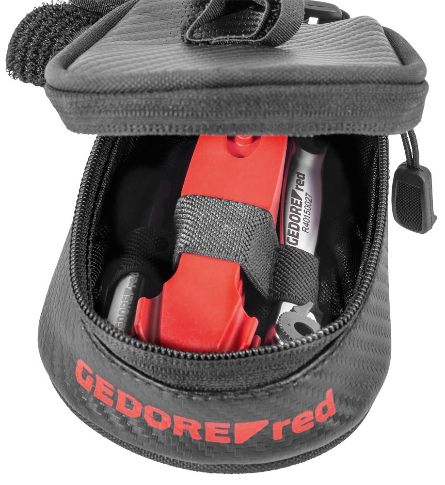 ergonomisches Handling durch Bit-Knarre und Bit-Adapter · Auswahl an Bits und Steckschlüssel auf die Verschraubungen am Fahrrad zugeschnitten · bei engen Platzverhältnissen: Knarre mit und ohne Bit-Adapter verwendbar · klemmbare Tasche zur sicheren Befestigung an Sattel und Sattelstange · keine Störgeräusche beim Fahren dank Reißverschluss aus Kunststoff